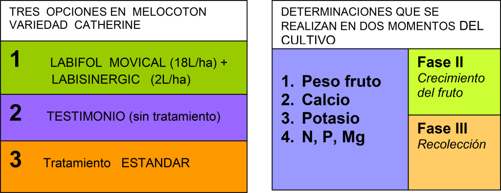 أظهرت التجارب التي أجراها القسم التقني في P.A. Macasa وجامعة ليدا (الدكتور بيري فيلار) على خوخ كاترين أن استخدام لابيفول موفكال ولابيسينيرجيك يزيد من محتوى الكالسيوم في الثمار ويقلل من نسبة N+K/Ca، وهو أمر سلبي على الجودة. هذان العنصران محددان لحفظ الثمار بشكل كافٍ بعد الحصاد ومقاومة النقل.