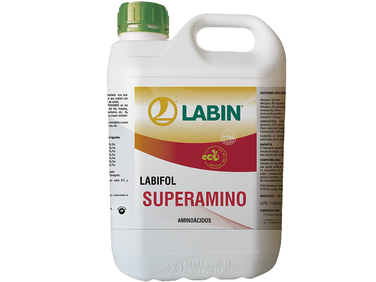LABIFOL SUPERAMINO è una formulazione progettata con aminoacidi liberi a basso peso molecolare che agiscono efficacemente contro le situazioni di stress, sia biotiche che abiotiche.