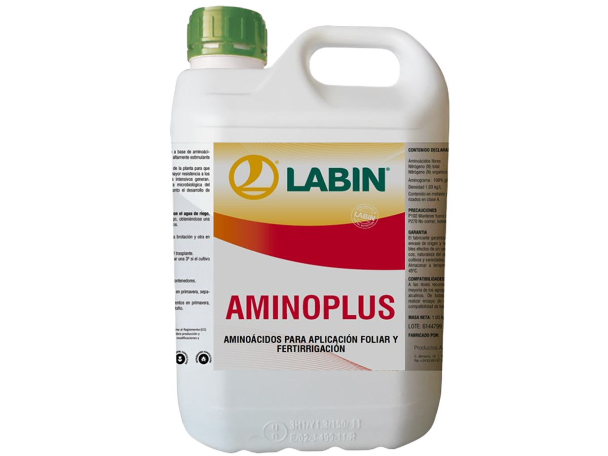 LABIN AMINOPLUS è un prodotto liquido ottenuto dall’idrolisi controllata di proteine vegetali naturali. Contiene aminoacidi a basso peso molecolare, adatti alla sua perfetta assimilazione, sia per via radicale che per via fogliare. Migliora la crescita, la fioritura e la fruttificazione, ottenendo un aumento dello sviluppo dei frutti e un anticipo della maturazione. È uno dei migliori BIOATTIVATORI attuali.